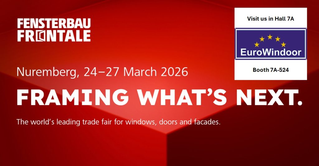 Frankfurt, March 2026 – EuroWindoor, the European umbrella association for windows, doors and facades, will be present at Fensterbau Frontale 24. – 27. March 2026 in Nuremberg. Visitors can find us at Booth 7A-524 in Hall 7A.